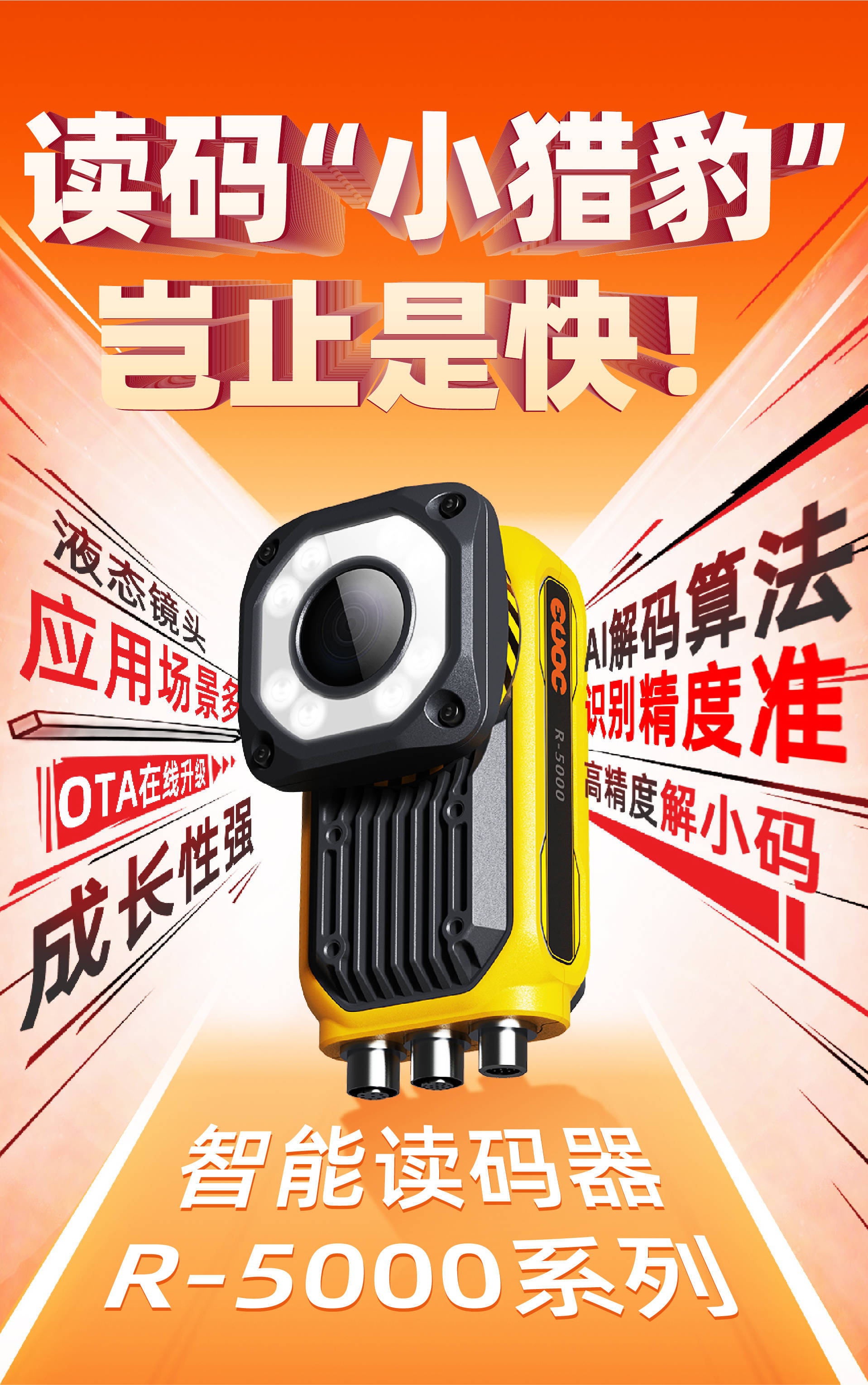 近日,lewin乐玩全新推出智能读码器R-5000系列,搭载液态镜头、深度学习算法,自动变焦速度与解码速度均有显著提高。R-5000具有应用场景多、识别精度准、成长性强等特性,能够快速精准读码,可为用户提供超强性能的读码解决方案。